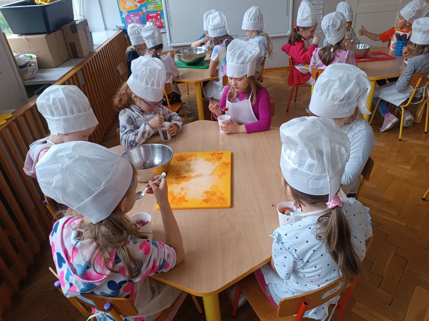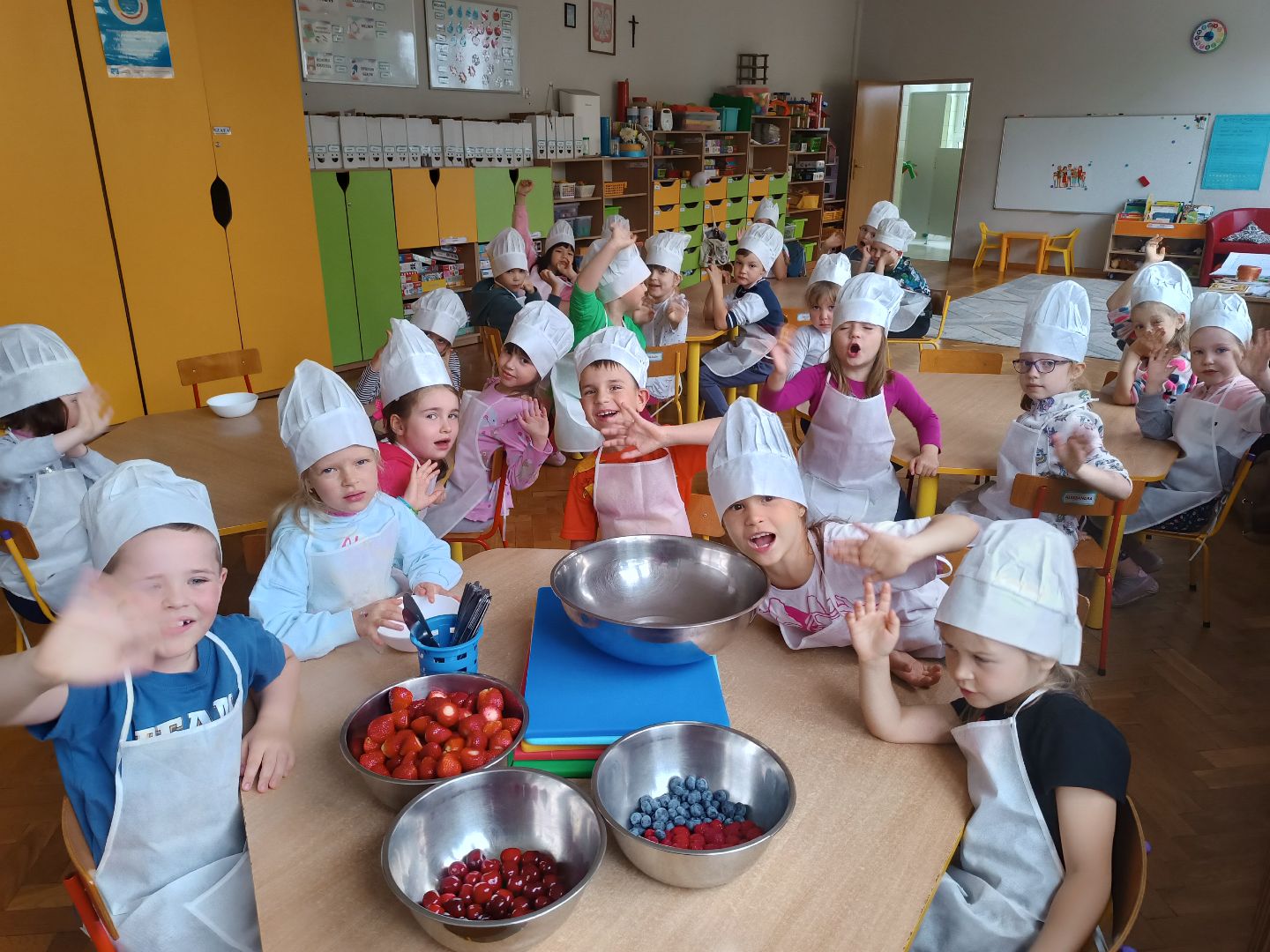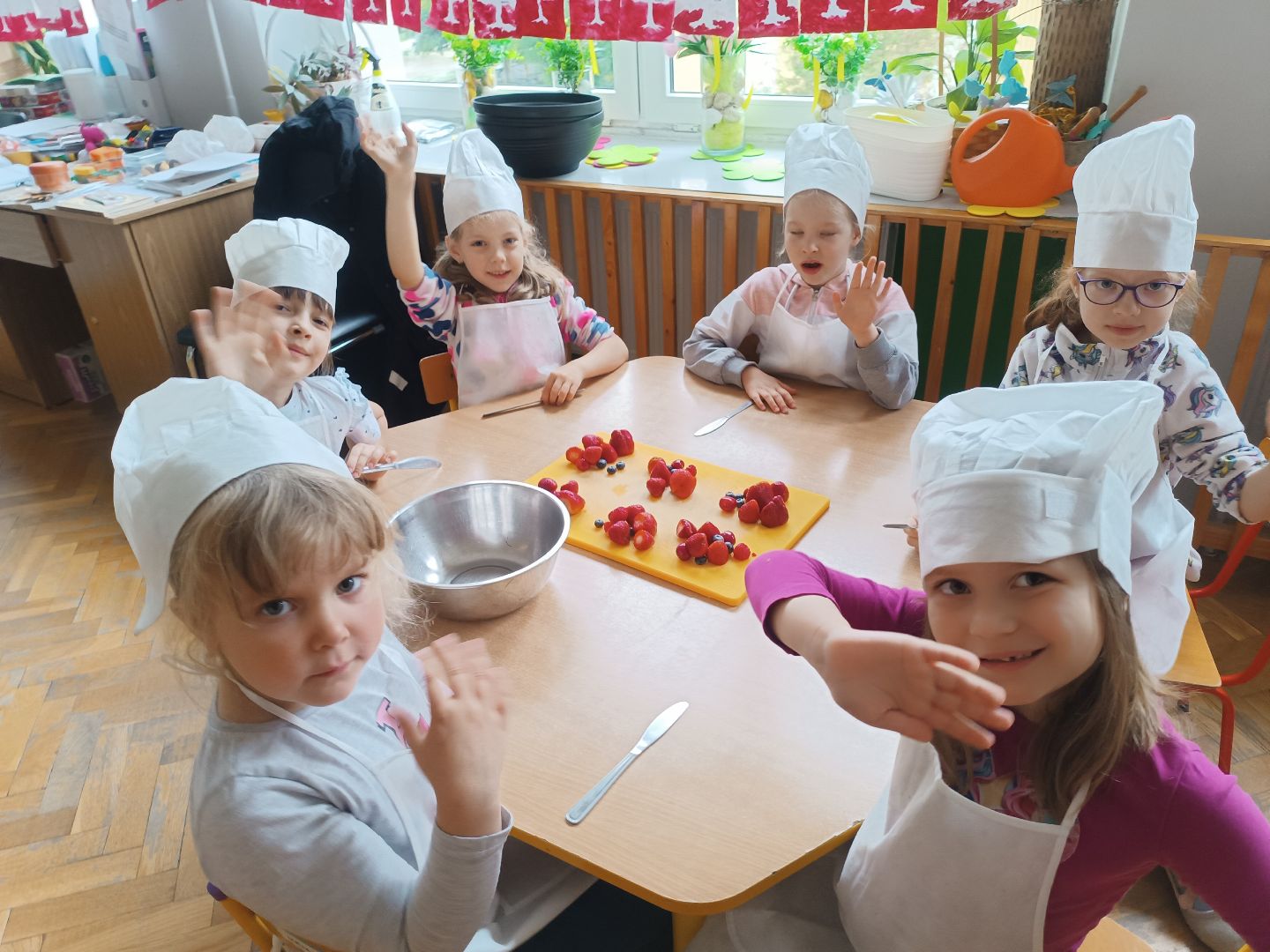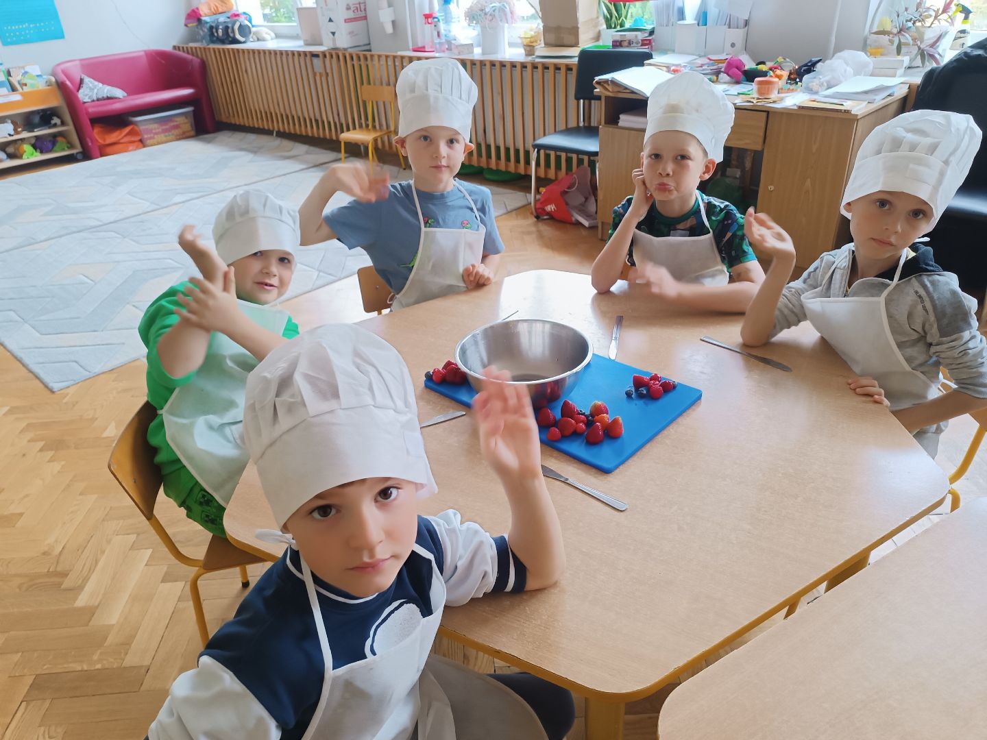 W drugim tygodniu czerwca "Wędrownicy" rozmawiali o zmysłach. Wybrały się na musical "Baśnie Dalekiego Wschodu", gdzie wieloma zmysłami odbierali sztukę. Malowali farbami plakatowymi do muzyki, wykonywały ćwiczenia inhibicyjno-incytacyjne. Dzieci utrwaliły sposoby mierzenia długości; rozwijały percepcję słuchową; utrwalały właściwe posługiwanie się określeniami: wczoraj, dziś, jutro...Podczas zajęć kulinarnych wykonały pyszną sałatkę owocową. Ten tydzień upłynął nam też na częstych próbach, gdyż w czwartek nasi "Wędrownicy" pożegnali przedszkole... Jeszcze chwila i po wakacjach ruszą do szkoły. Występ naszych 6-latków był przepiękny i tak samo przepięknego życzymy im rozkwitu w szkole...