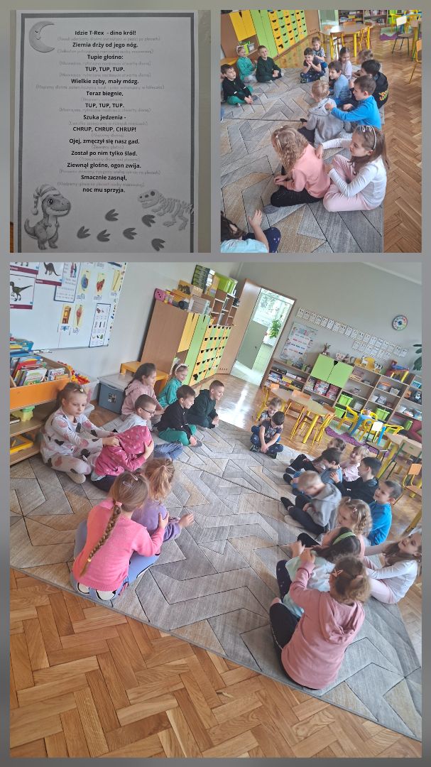 U nas dzień dinozaura trwa cały tydzień. Dzięki czemu dzieci pobudzają ciekawość prehistoria, poszerzają wiedzę o wymarłych gadach oraz rozwijają umiejętność poznawczą i społeczną poprzez zabawy tematyczne.