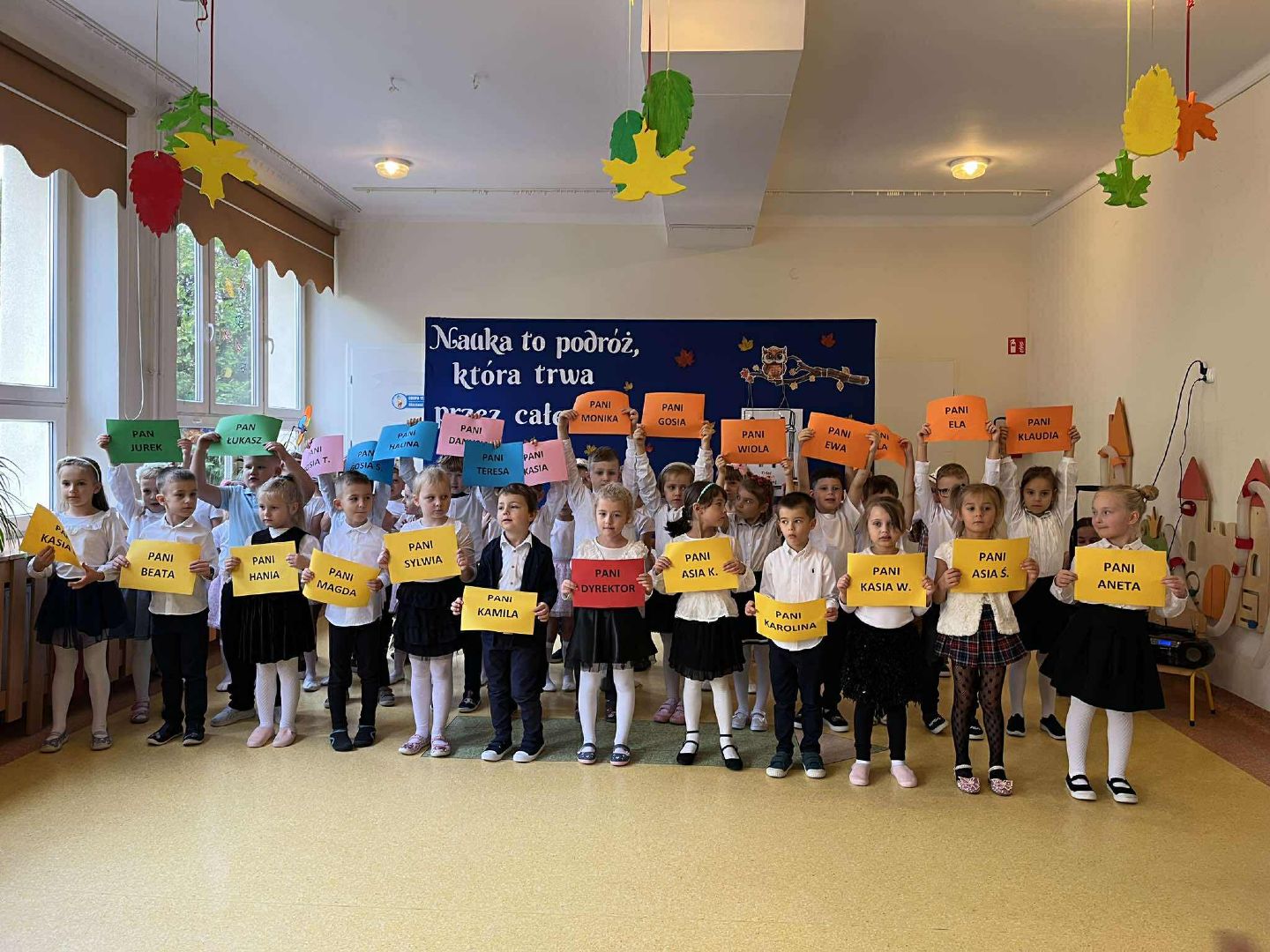 Dziś, tj. 14.10.2025 r. w naszym przedszkolu obchodziliśmy Dzień Edukacji Narodowej. Tego dnia dwie najstarsze grupy, tj. Żabki i Wędrownicy przygotowali wszystkim Nauczycielom i Pracownikom PS nr 49 piękną akademię. Żabki zaprezentowały piękne wiersze i piosenki, natomiast Wędrownicy piękne tańce... Natomiast grupa Kaczuszek zadbała o drobne upominki dla Wszystkich. Dziękujemy ❤️