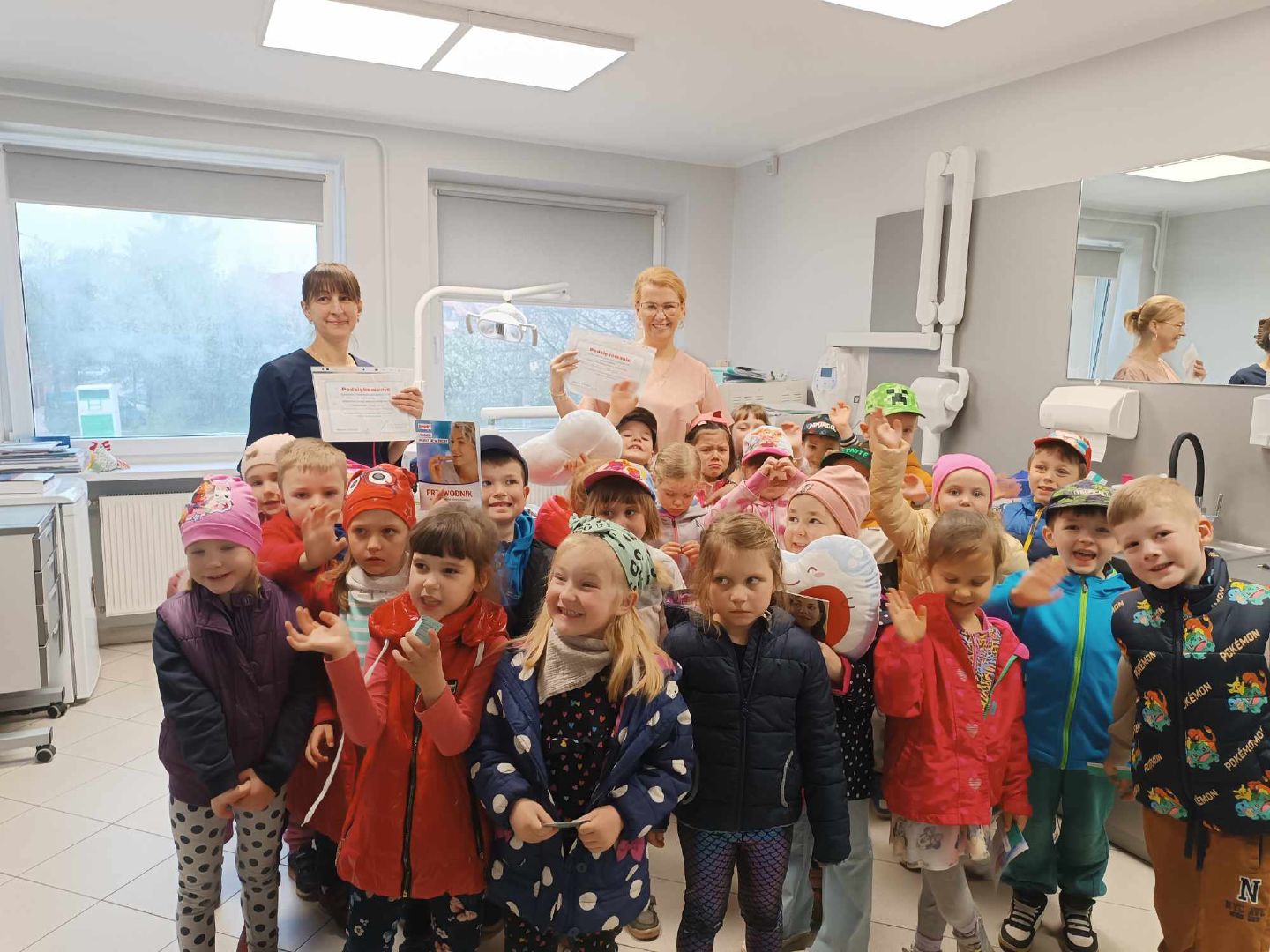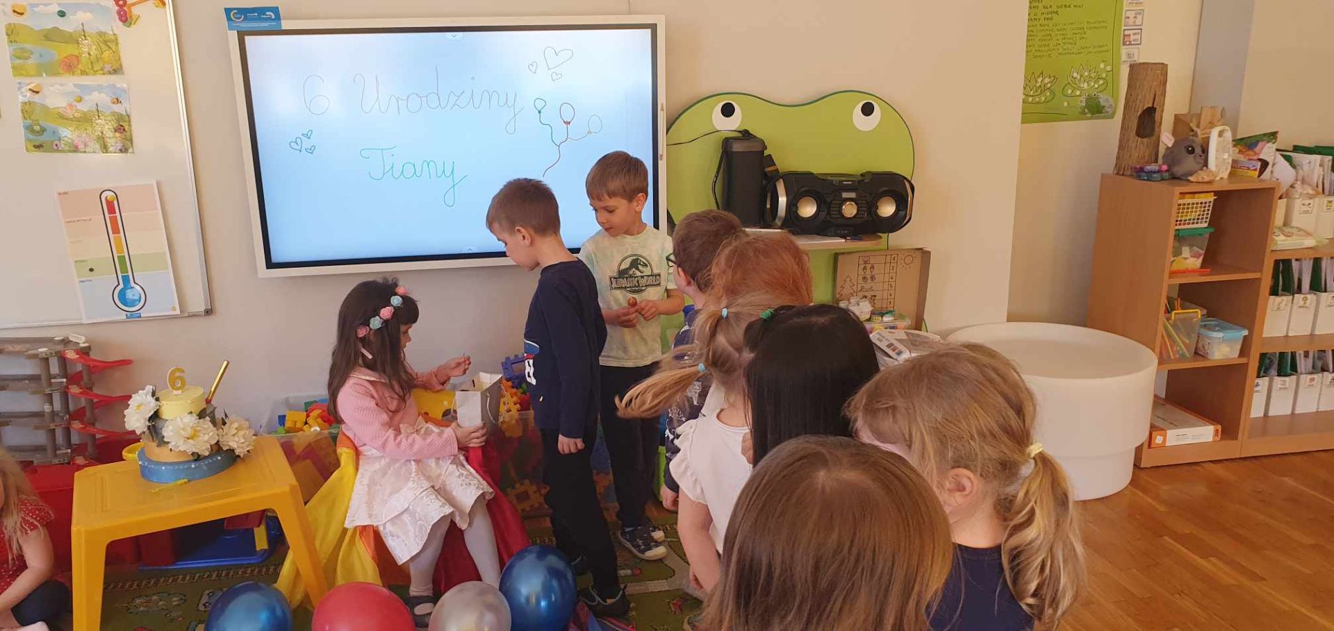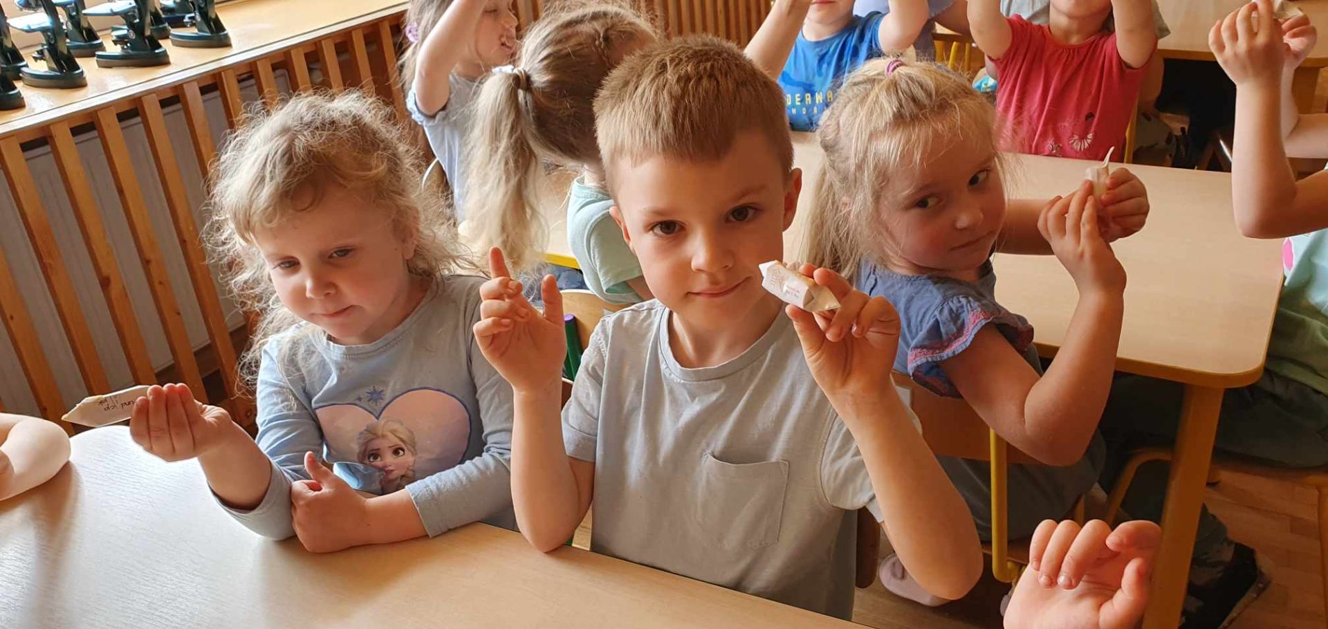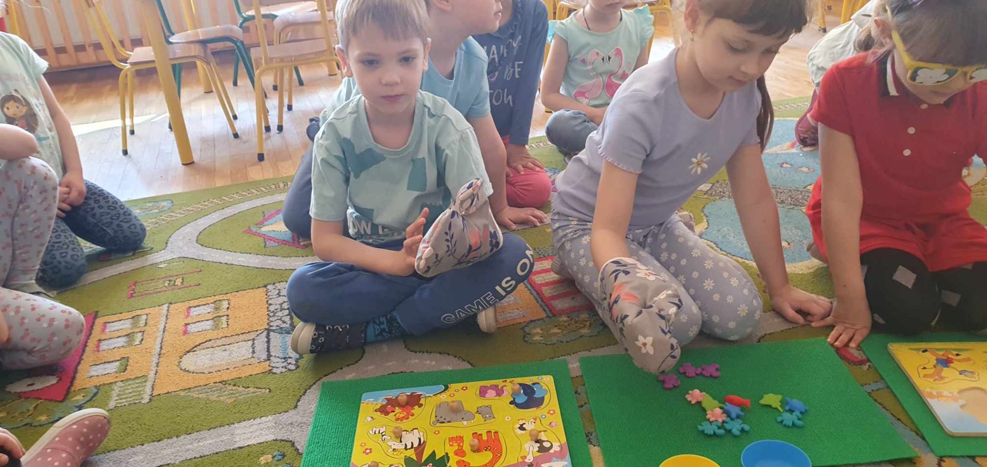 W drugim tygodniu kwietnia rozmawialiśmy o zdrowiu. Dzieci tworzyły mapę pojęciową na temat zdrowia; poznały literę "Z", "z". Bawiły się graficznie przy muzyce; poznały opowiadanie o "Chorobie Karolka" M. Jelonek; pracowały z mikroskopem; poznały jego budową; obserwowały bakterie; ziarenka bazylii; fasolę, czerwoną cebulkę...; rysowały własne bakterie; sadziły warzywa; utrwalały liczebniki główne; rozwijały umiejętność dodawania i odejmowania w zakresie 10. Tańczyły z rekwizytem, wybrały się na wycieczkę do gabinetu stomatologicznego "Baby - dent"... Dodatkowo brały udział w Niebieskich Igrzyskach; świętowały urodziny Tiany; Dzień Czekolady; brały udział w akcji fundacji ajakbox...