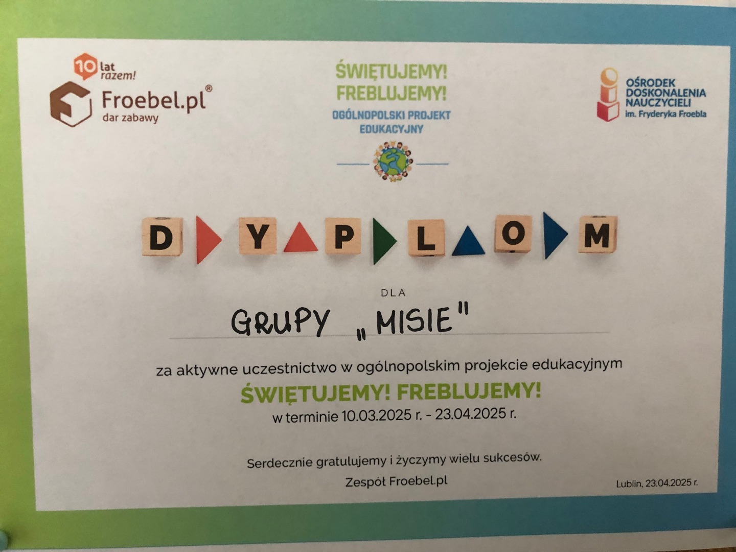 Fotorelacja z udziału w Ogólnopolskim Projekcie Edukacyjnym z okazji rocznicy urodzin F. Froebla