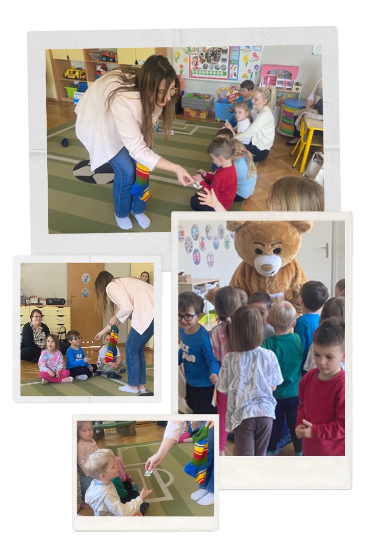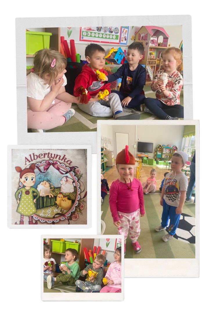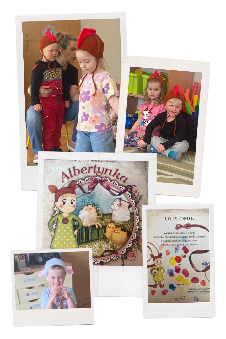 „Spotkanie z autorką książek” - udział w warsztatach z pisarką p. Katarzyną Janowicz - Timofiejew, poznanie specyfiki zawodu. Zabawy parateatralne na podstawie opowiadania ,,Albertynka".