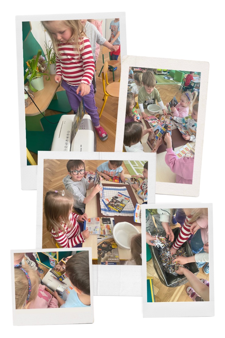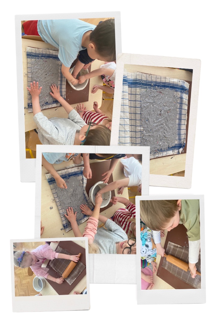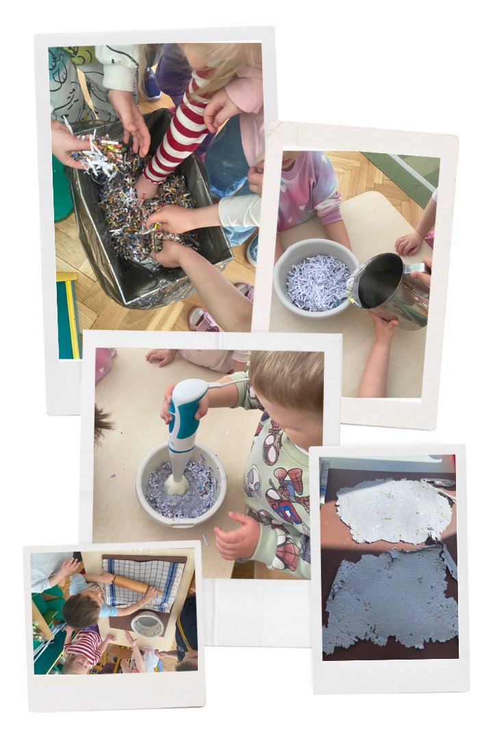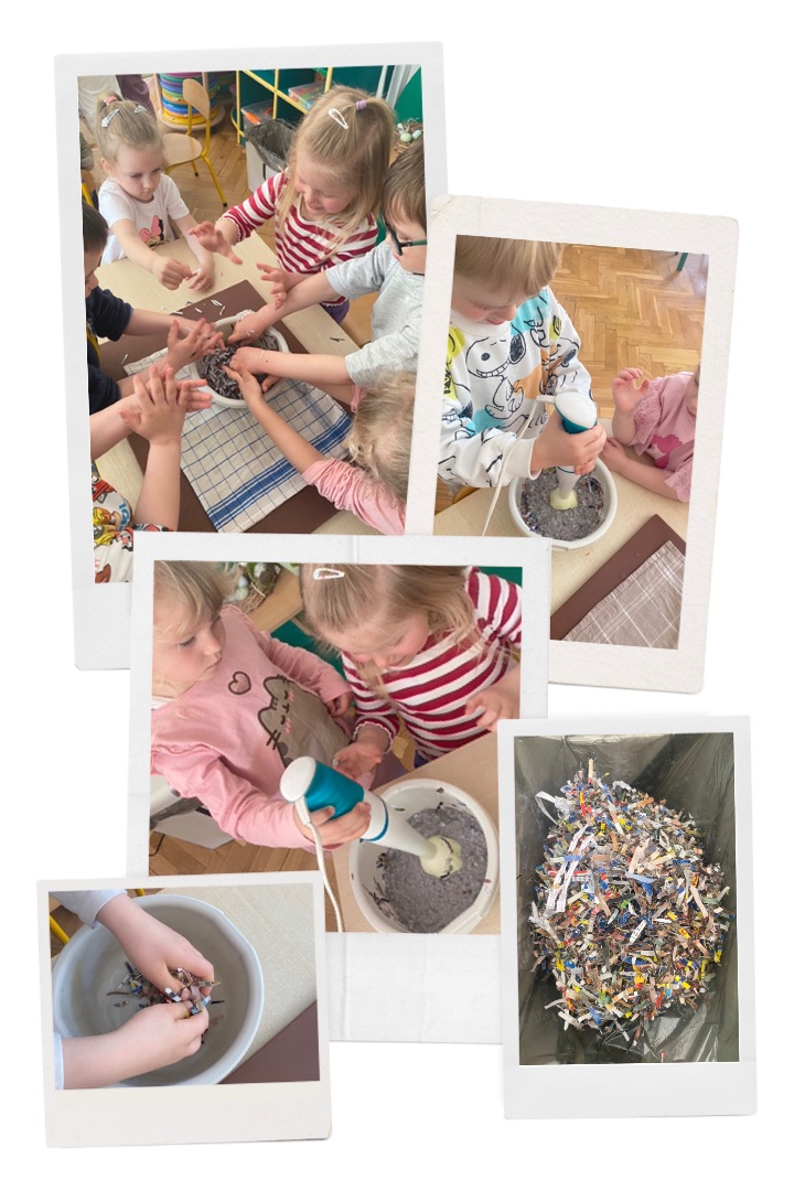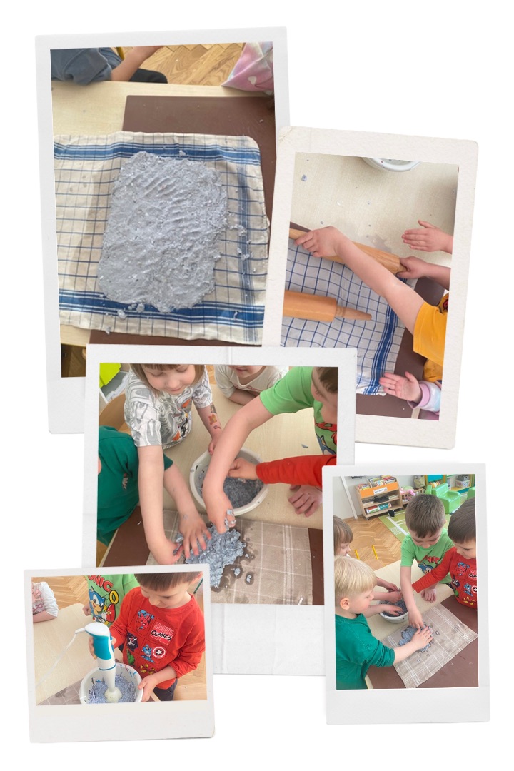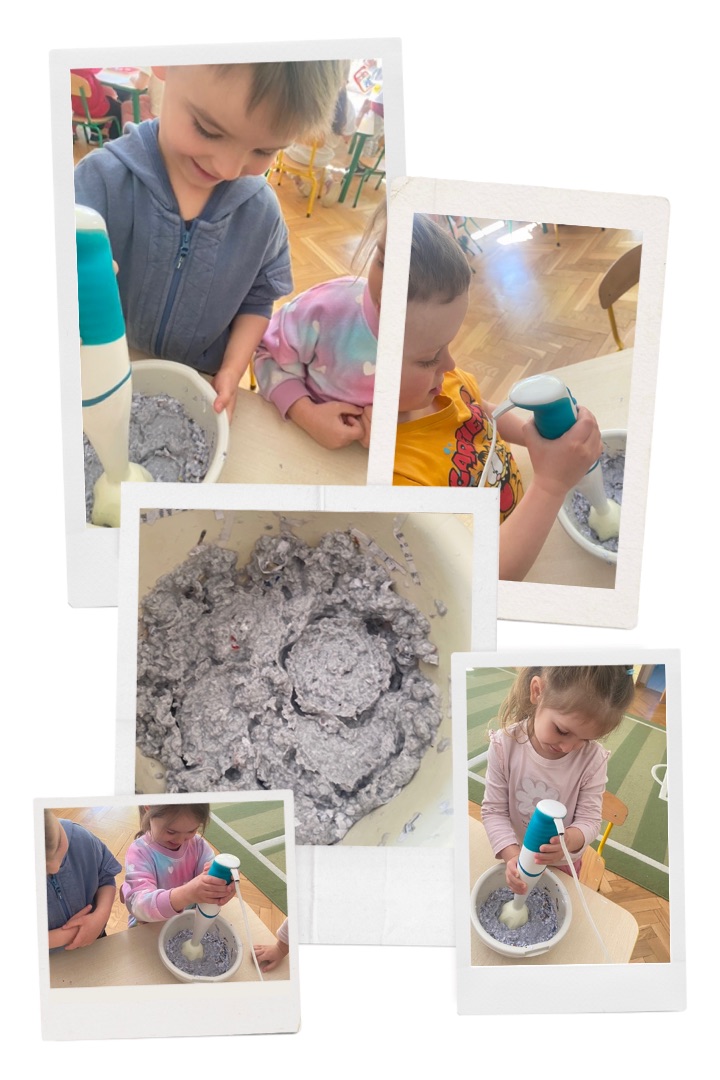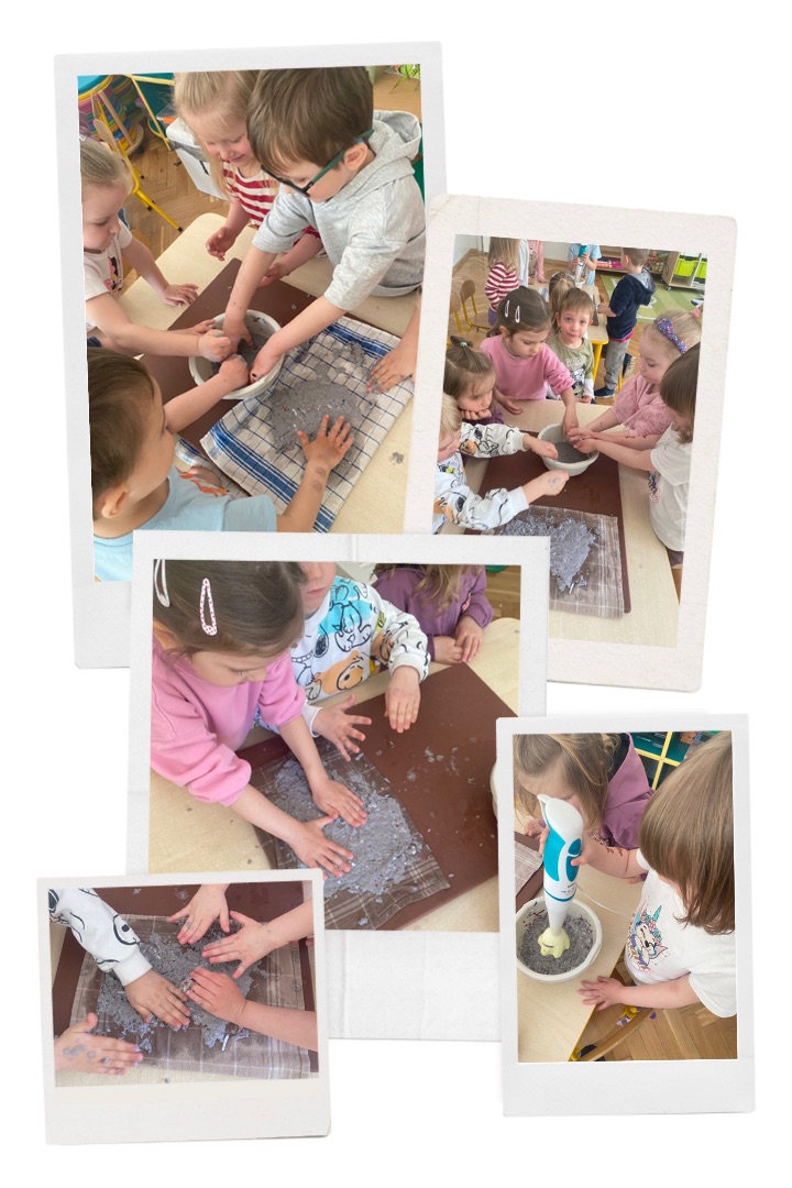 Grupa Badawcza: „Papier czerpany” - zabawa badawcza; przygotowanie papieru czerpanego, obserwacja i omawianie jak powstaje papier.