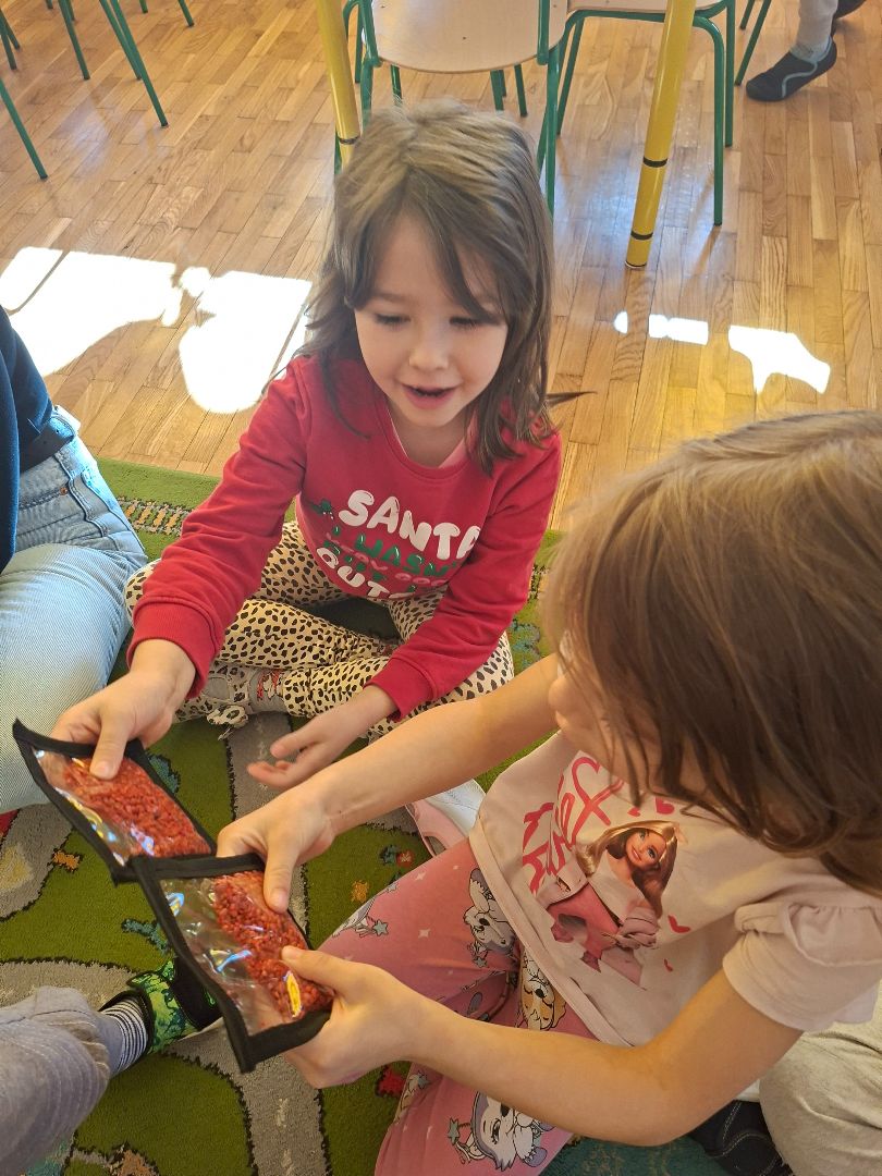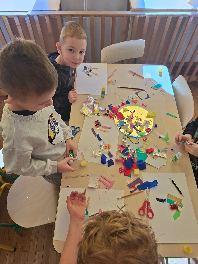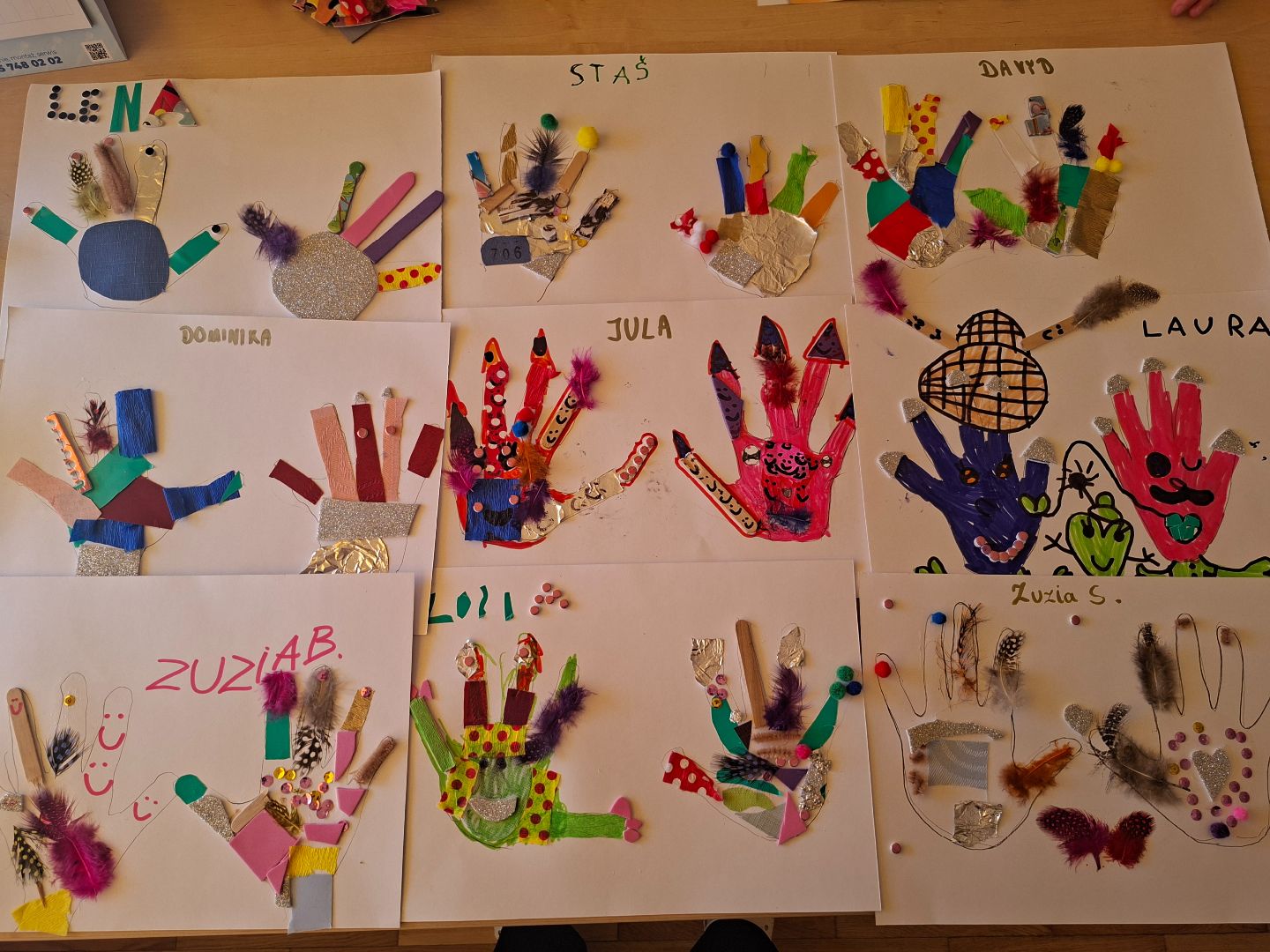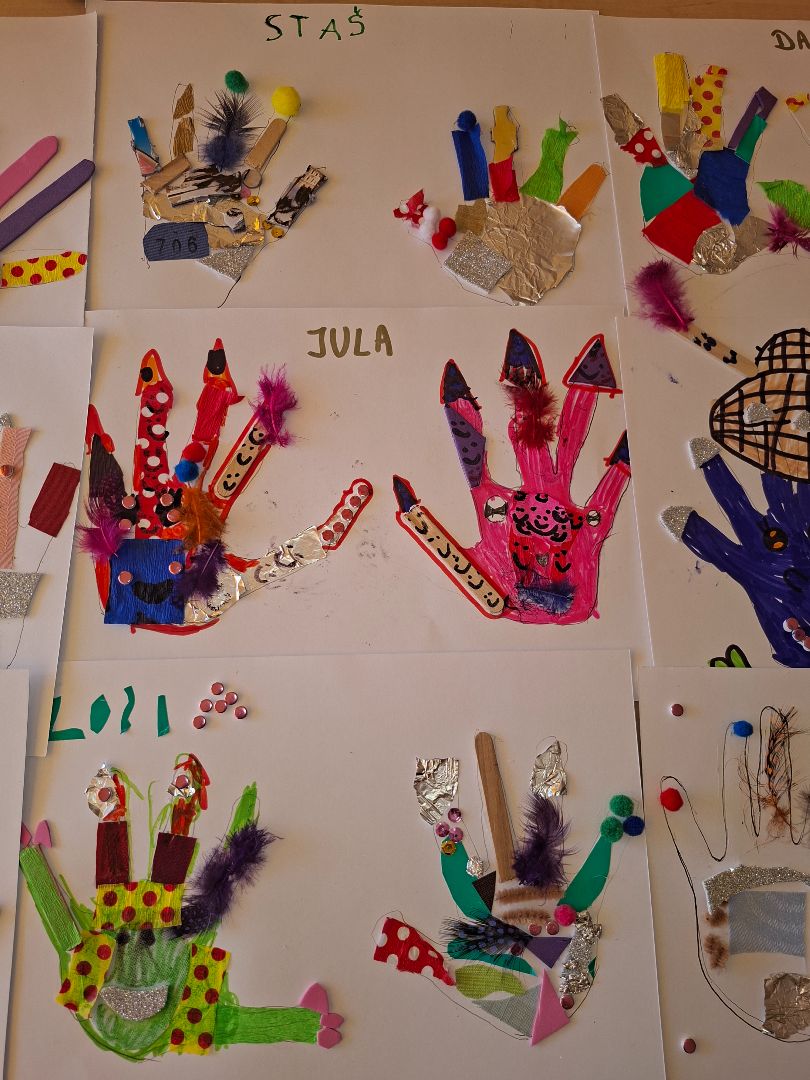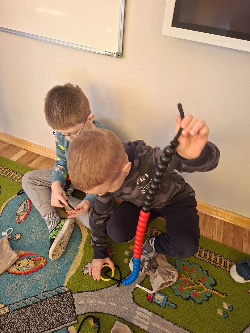 Przy okazji rozmowy o naszych zmysłach, zrealizowaliśmy zadanie projektowe pt. Books and Play. Przeczytaliśmy sensoryczne książeczki w języku angielskim, następnie przeszliśmy do rozwijania naszego zmysłu dotyku dzięki pomocom dydaktycznym od "Małych jeżyków", darom froebla...