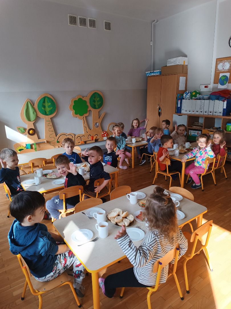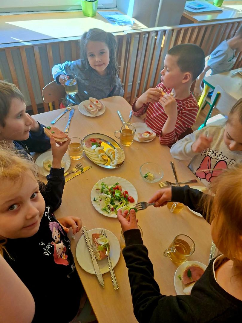 Dziś w naszym przedszkolu odbył się Europejski Dzień Śniadania. Jego celem jest promowanie najważniejszego posiłku dnia, który dostarcza energii, poprawia koncentrację i zapobiega chorobom. Inicjatywa ta przypomina o spożywania pożywnego posiłku, który powinien stanowić 25-30% dziennego zapotrzebowania na energię.