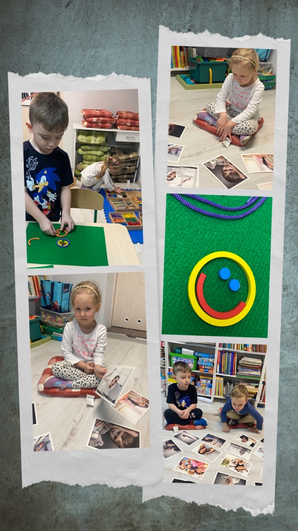 W tym tygodniu rozpoczęliśmy zajęcia z edukacji włączającej, które mają na celu wspieranie dobrostanu psychicznego oraz społecznej adaptacji i emocjonalnej równowagi uczestników, niezależnie od poziomu ich zdolności. W tym tygodniu poznawaliśmy podstawowe emocje w toku zabaw z wykorzystaniem min. darów Froebla.