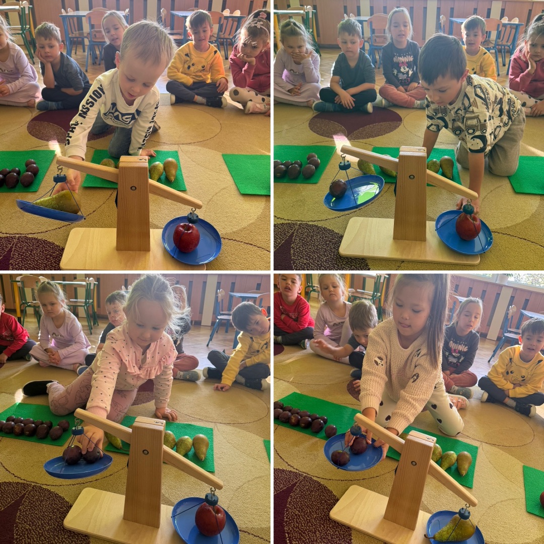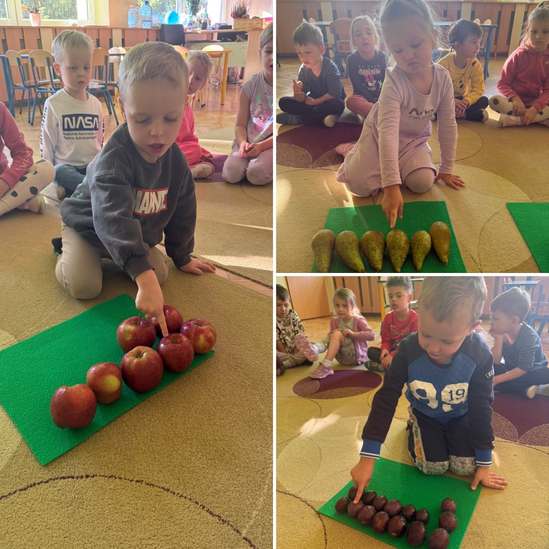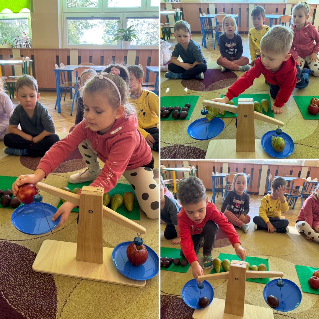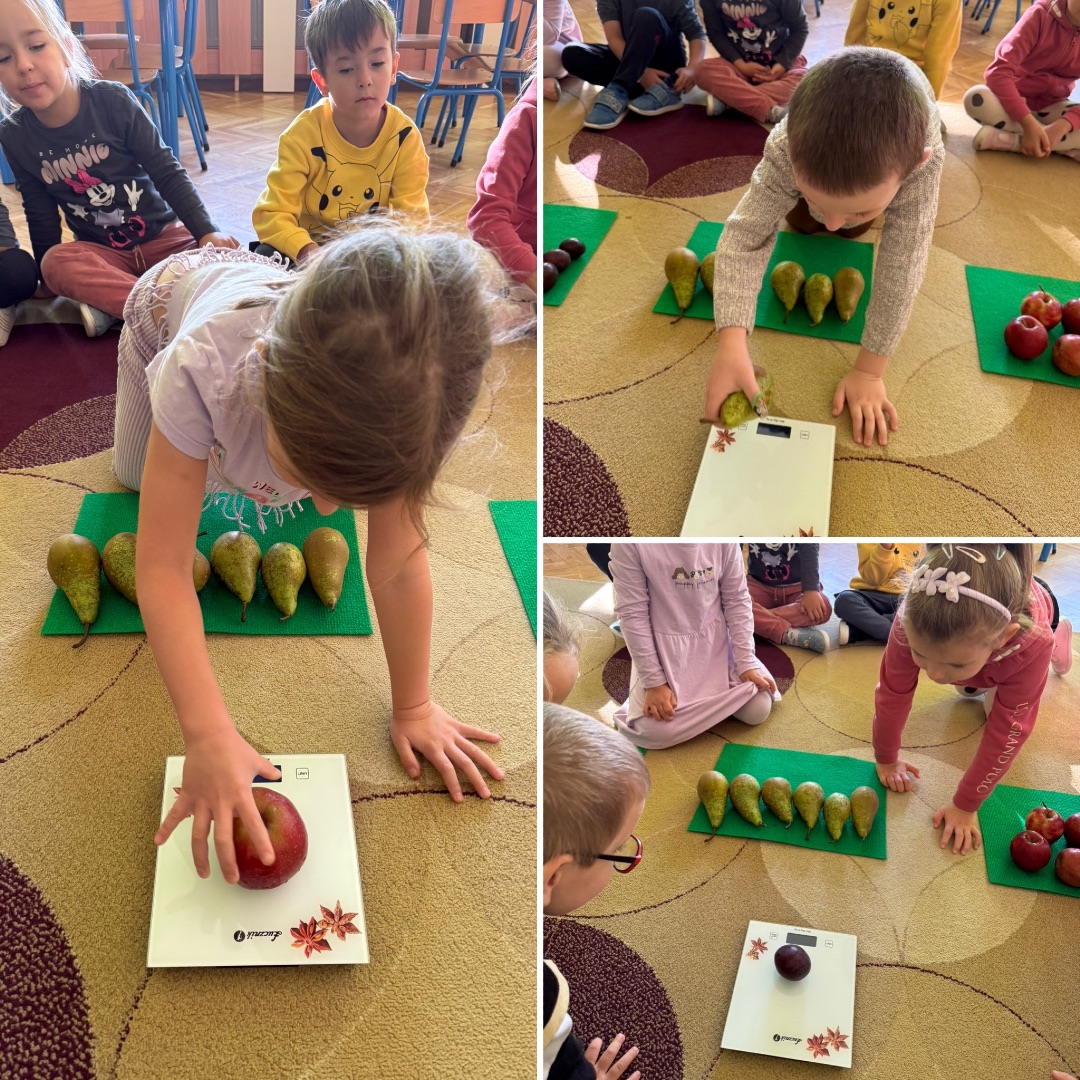 Przeliczamy jesienne owoce, ważymy je poznając różne rodzaje wag: szalkową, spożywczą i łazienkową.