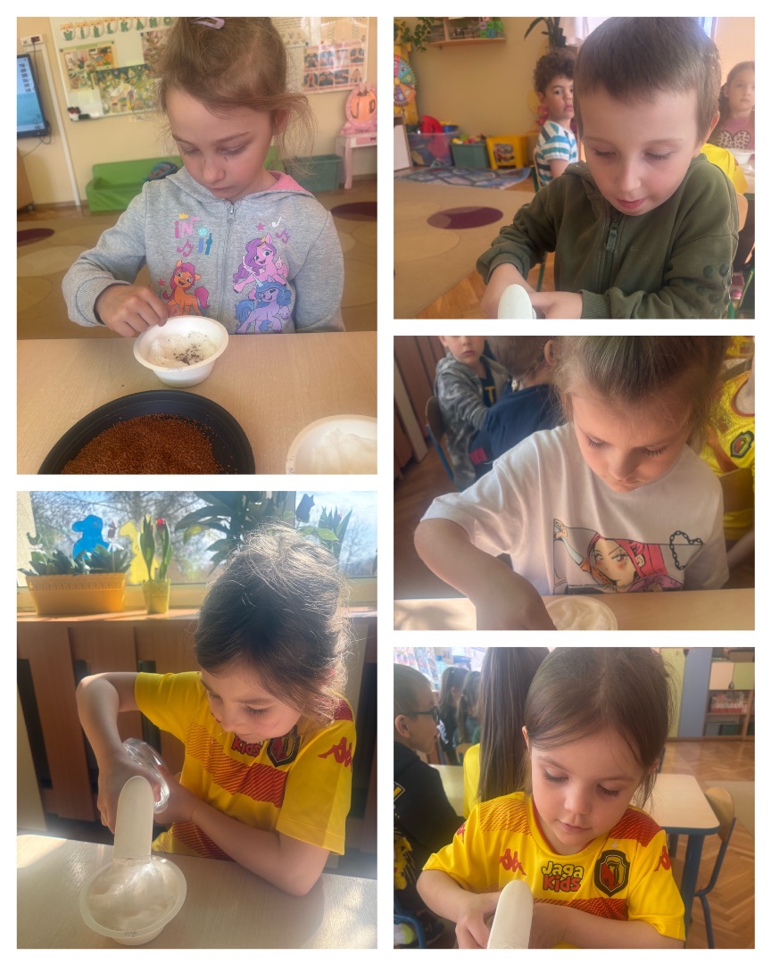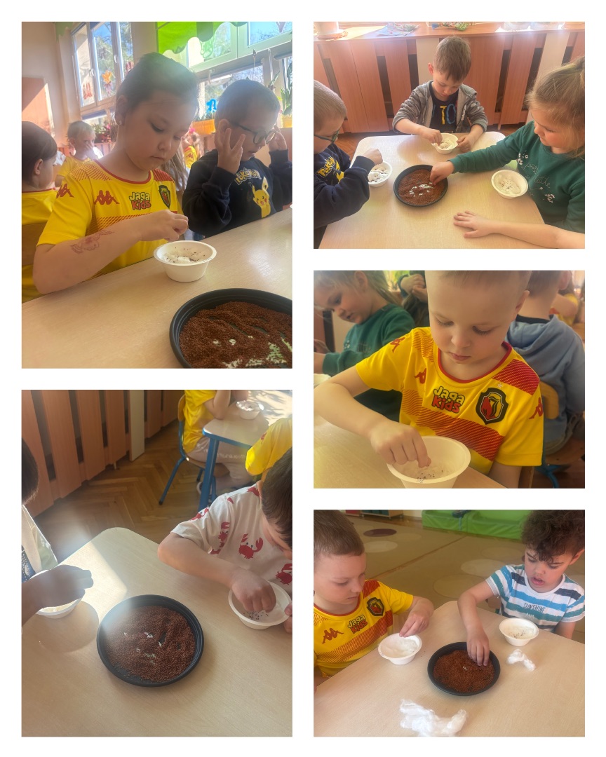 W tym tygodniu przedszkolaki utrwaliły tradycje i obyczaje Wielkanocne. W naszej sali parapet wypełniony został upominkami oraz stroikami zrobionymi z owsa i rzeżuchy.