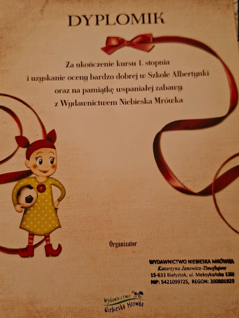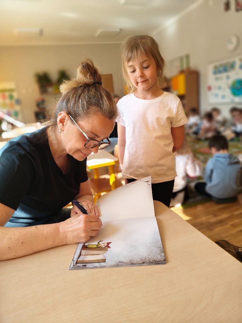 Dnia 23.04 odbyły się w naszej grupie warsztaty z autorką książek dla dzieci - Panią Kasią. Podczas tych zajęć mieliśmy okazję wcielić się w rolę postaci, które występują w książce o Albertynce. Na koniec otrzymaliśmy książkę z autografem oraz dyplom na pamiątkę :) na koniec dnia wykonaliśmy swoje piękne zakładki do nowej książki :)
