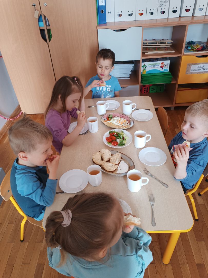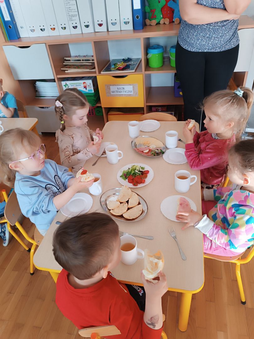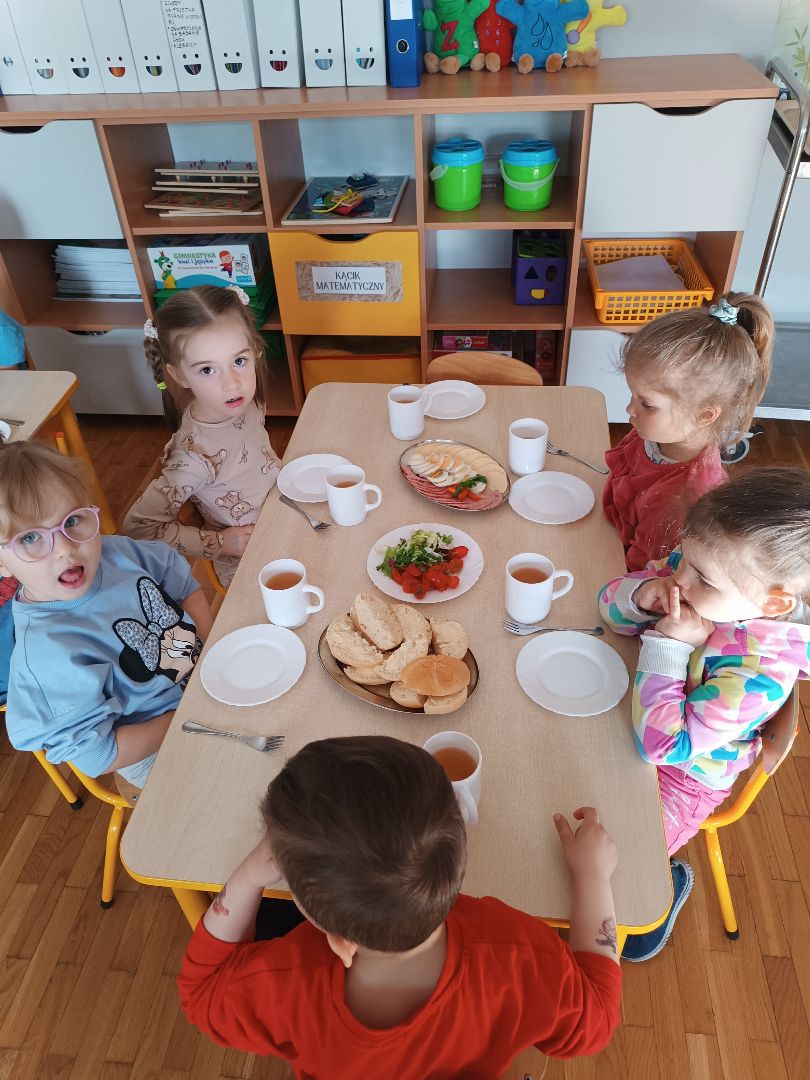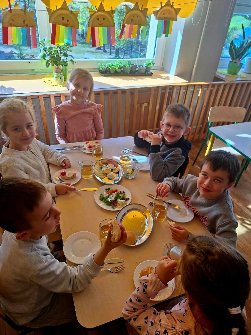 Dziś w naszym przedszkolu odbył się Europejski Dzień Śniadania. Jego celem jest promowanie najważniejszego posiłku dnia, który dostarcza energii, poprawia koncentrację i zapobiega chorobom. Inicjatywa ta przypomina o spożywania pożywnego posiłku, który powinien stanowić 25-30% dziennego zapotrzebowania na energię.